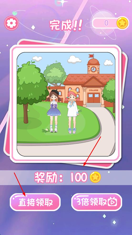 4、完成換裝到結算頁,可直接領獎勵或看廣告3倍領金幣,積累貨幣解鎖更多服飾。
