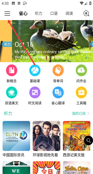 1、四冊新概念英語完整課程體系搭載智能分句跟讀技術,實時評測發音準確度并生成改進建議。