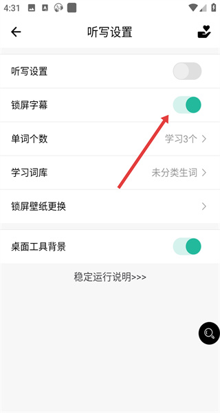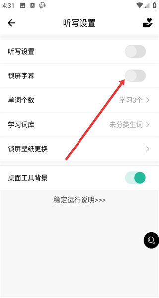 4、點擊鎖屏字幕選項右側的開關,將其開啟,這樣在鎖屏狀態下也能顯示字幕,方便學習。