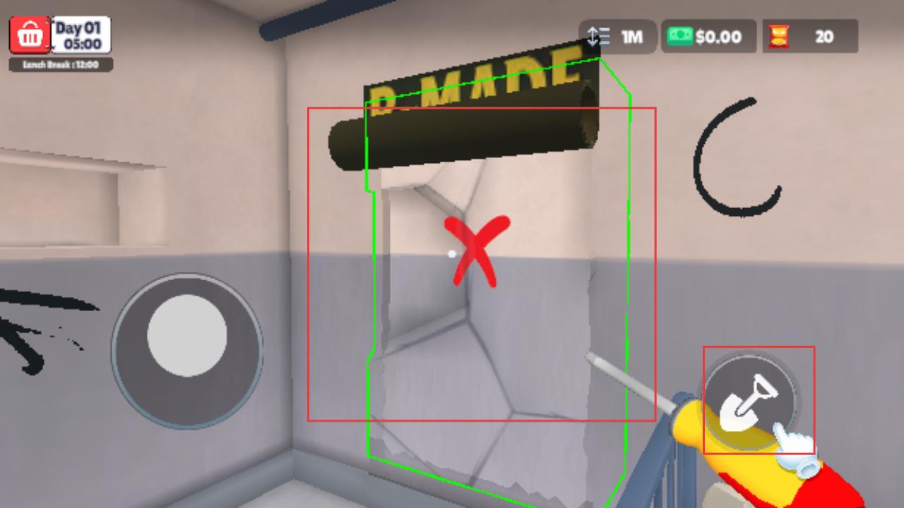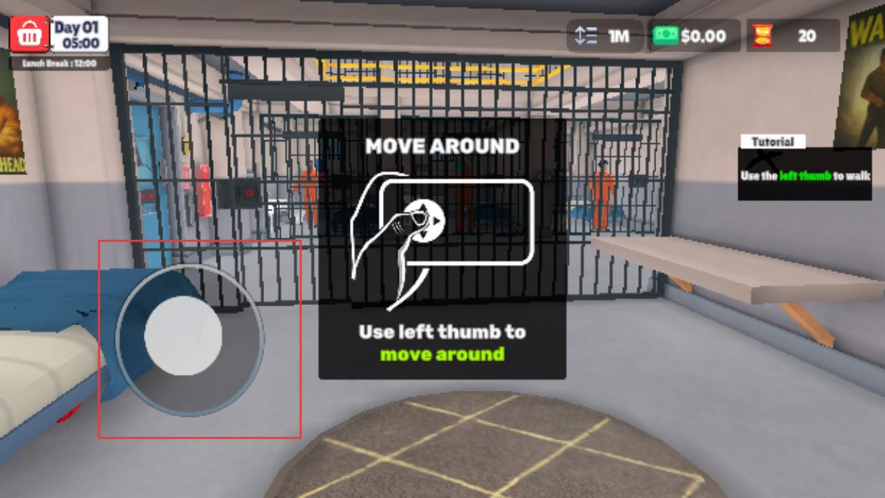 1、進入游戲,用左手拇指操控左側移動按鈕,在監獄場景里自由走動,熟悉環境,為后續挖掘逃脫做準備。