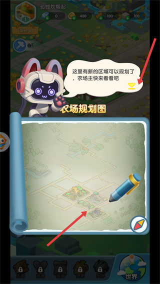 3、會出現農場規劃圖,上面有新的可規劃區域,查看規劃圖,了解農場可拓展的區域,為農場發展做規劃。