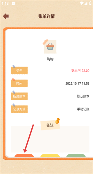 3、賬單詳情頁可看備注記錄方式,若需刪除不需要的錯誤賬單點底部按鈕即可觸發刪除確認彈窗。