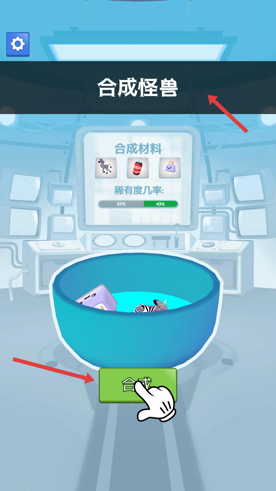 2、選好物品后,界面會顯示合成怪獸,下方有綠色的合成按鈕,點擊合成按鈕,就能將選好的物品合成為怪獸。