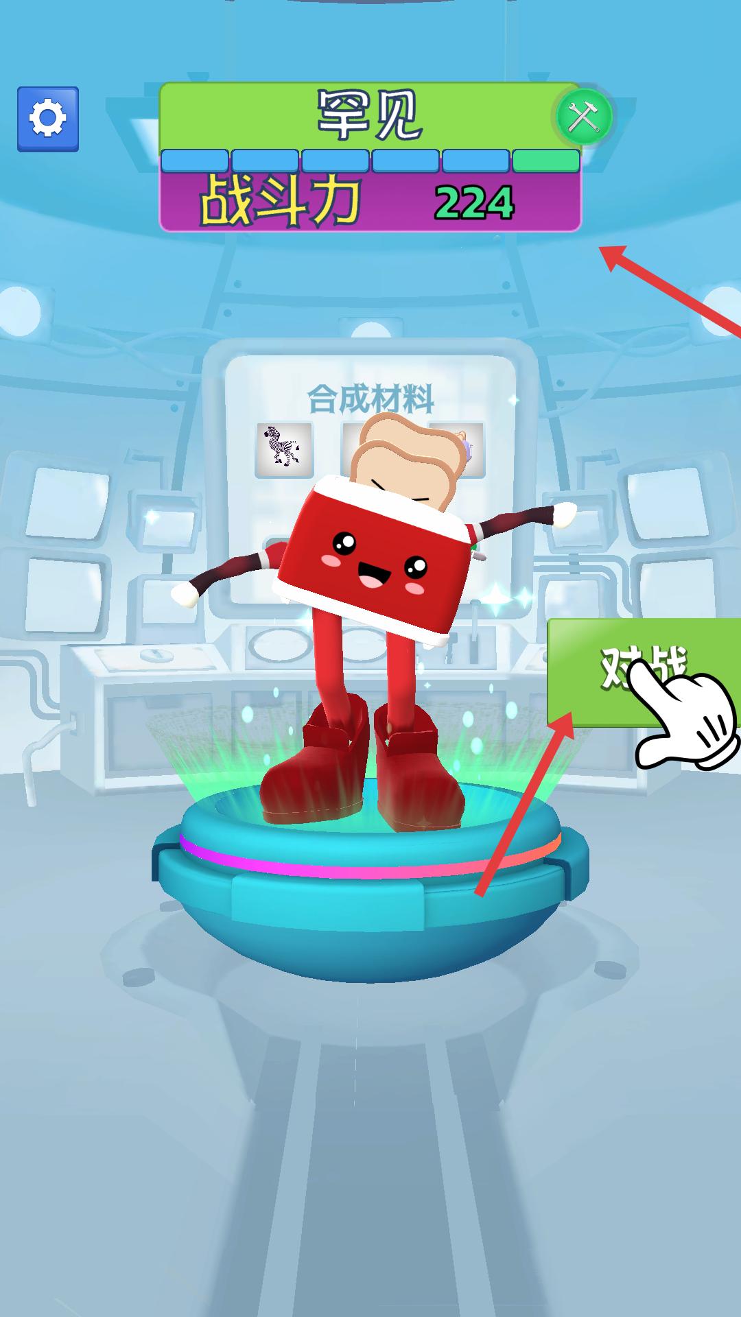 3、合成成功后,會出現合成的怪獸,界面顯示怪獸的稀有度和戰斗力,點擊對戰按鈕,可開啟對戰。