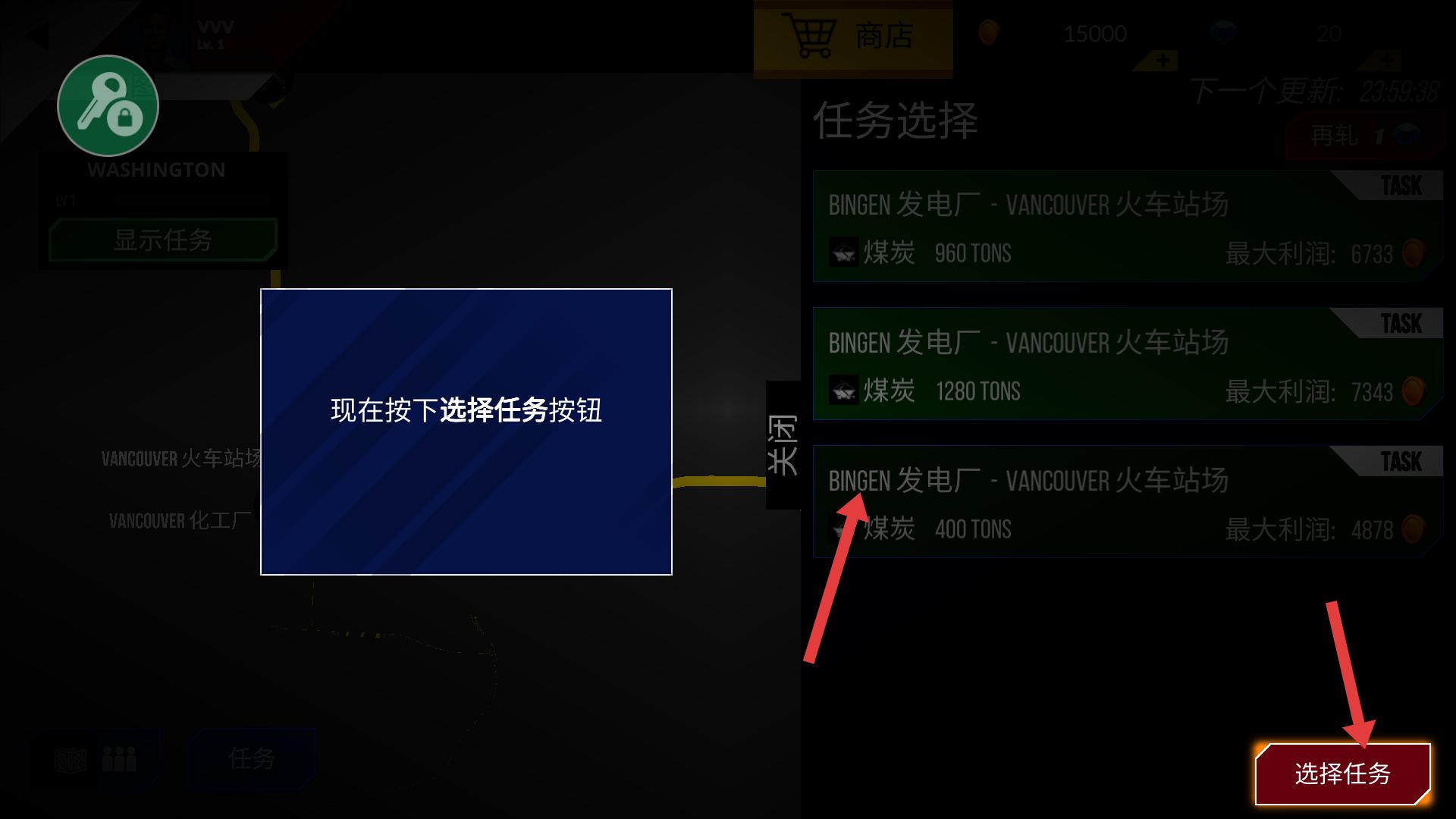 2、進入任務選擇界面,會看到多個運輸煤炭的任務,根據自身情況,按下選擇任務按鈕,挑選合適的任務開始挑戰。