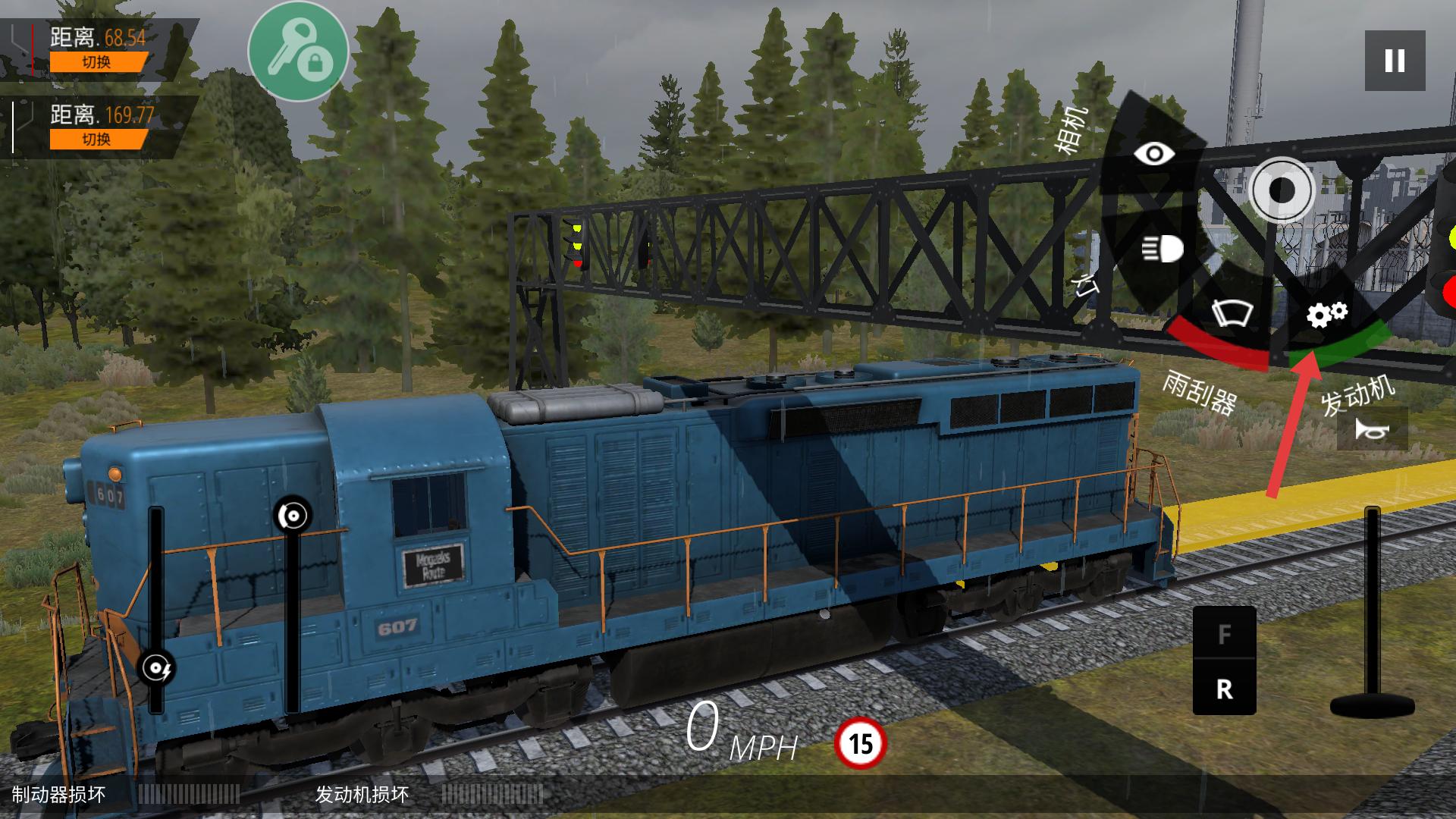 4、行駛過程中,可利用右側的功能按鈕,如調整發動機等,來優化火車運行狀態,同時注意火車的速度和距離等參數。