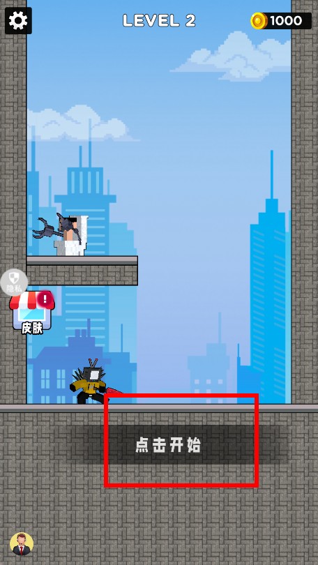 1、進入關卡,點擊開始按鈕,操控角色在城市建筑間的平臺上,準備與對手展開對決,開啟戰斗。