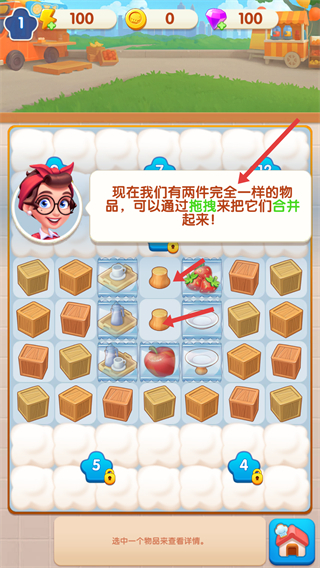 3、當有兩件完全一樣的物品時,通過拖拽的方式,把它們合并起來,這樣能得到新的物品,推進游戲進程。