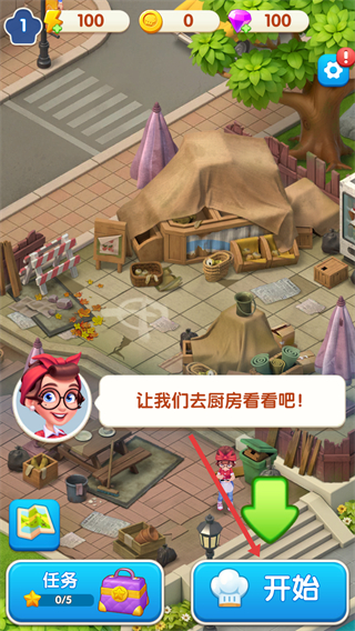 1、點擊開始按鈕,進入廚房相關玩法,開啟合并物品等操作,在這個過程體驗烹飪前的準備工作。