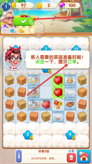 2、準備好客人需要的菜品后,點擊提交訂單,完成訂單可獲得獎勵,提升經營收益。