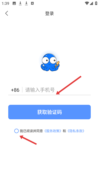 2、在登錄頁面輸入手機號勾選同意服務政策和隱私條款,點擊獲取驗證碼完成登錄即可暢享會員特權。