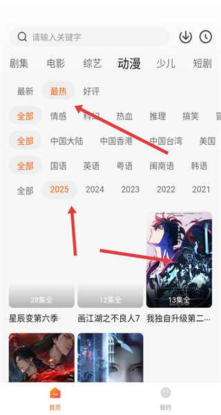 1、進入動漫頻道選最熱分類再篩選2025年份和中國大陸地區等,或者通過搜索找到想追的動漫點擊進入。