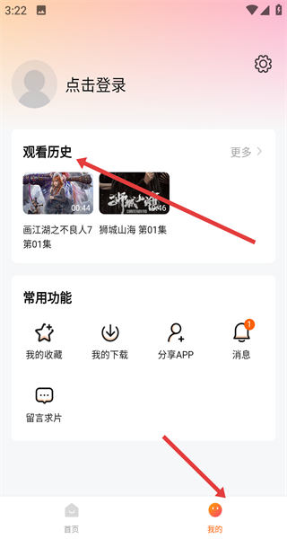 4、點擊底部我的進入個人頁,能夠查看觀看歷史回顧曾經看過的動漫,用常用功能管理所收藏下載的動漫。