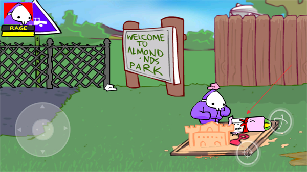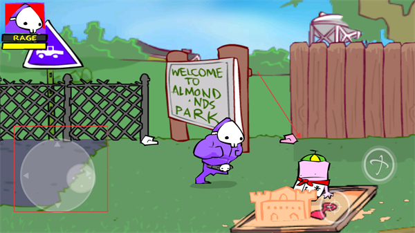 2、進入游戲場景后,通過屏幕左下角的虛擬搖桿操控紫色角色移動,靠近在沙地上玩耍的小朋友角色。