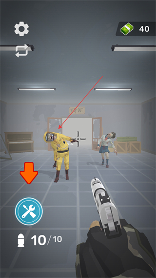 2、屏幕中間會出現瞄準十字準星,移動準星瞄準出現的僵尸如穿著防護服、穿著校服的僵尸等,然后點擊屏幕進行射擊消滅僵尸。