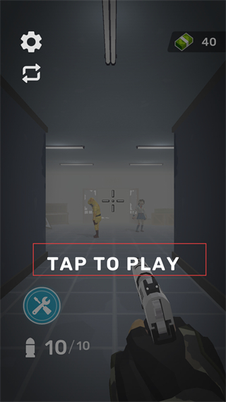 1、玩家下載游戲之后然后點擊進入在游戲初始界面,點擊TAP TO PLAY按鈕,進入游戲戰斗場景,準備開始對抗僵尸。
