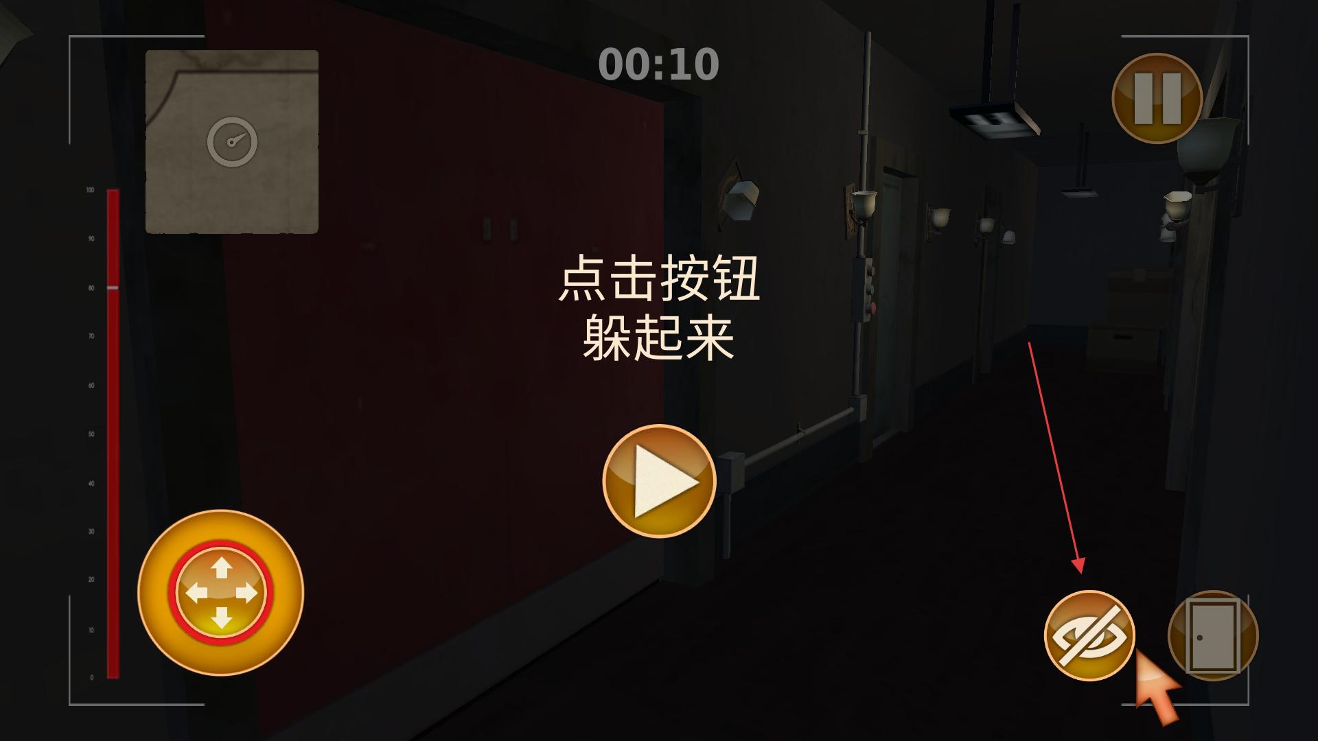 3、在走廊等區域,若出現危險提示,要及時點擊相應按鈕躲起來,避免被發現,確保自身安全,以便繼續探索出口。