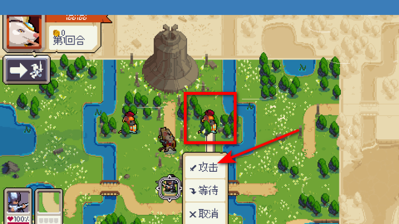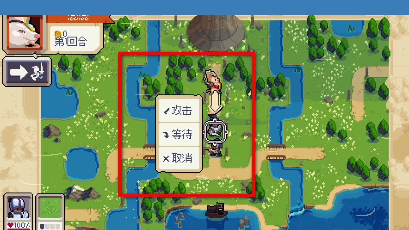 2、靠近敵人后,會彈出操作選項,可選擇攻擊主動發起戰斗,也能選等待或取消,根據戰局策略來決定行動。