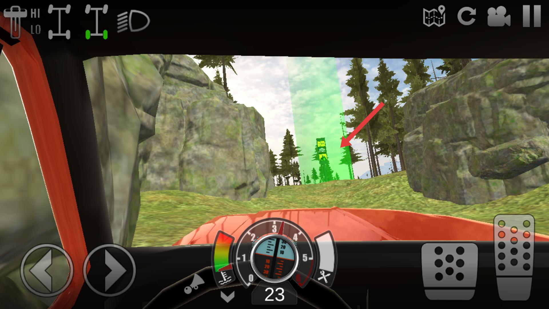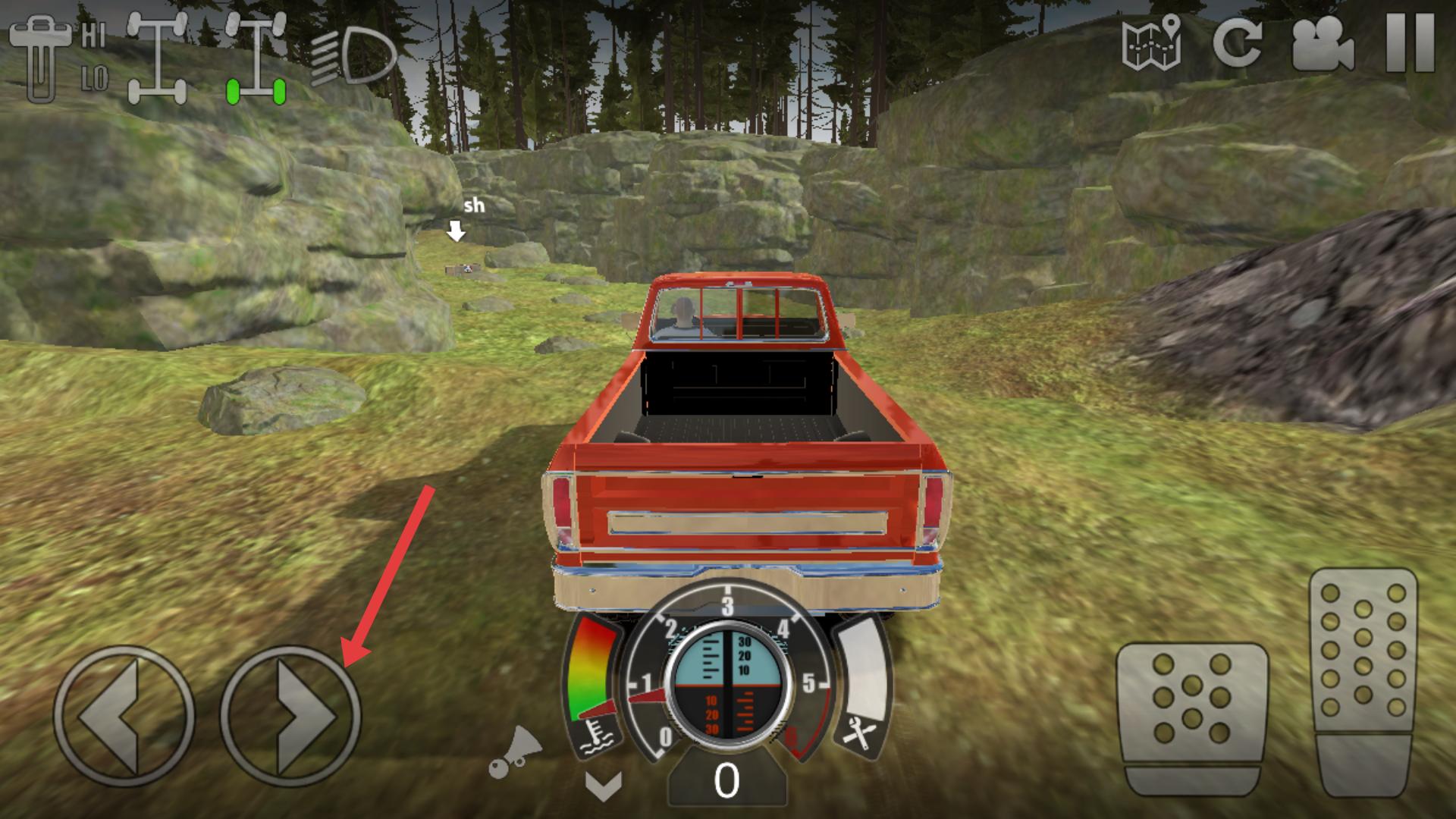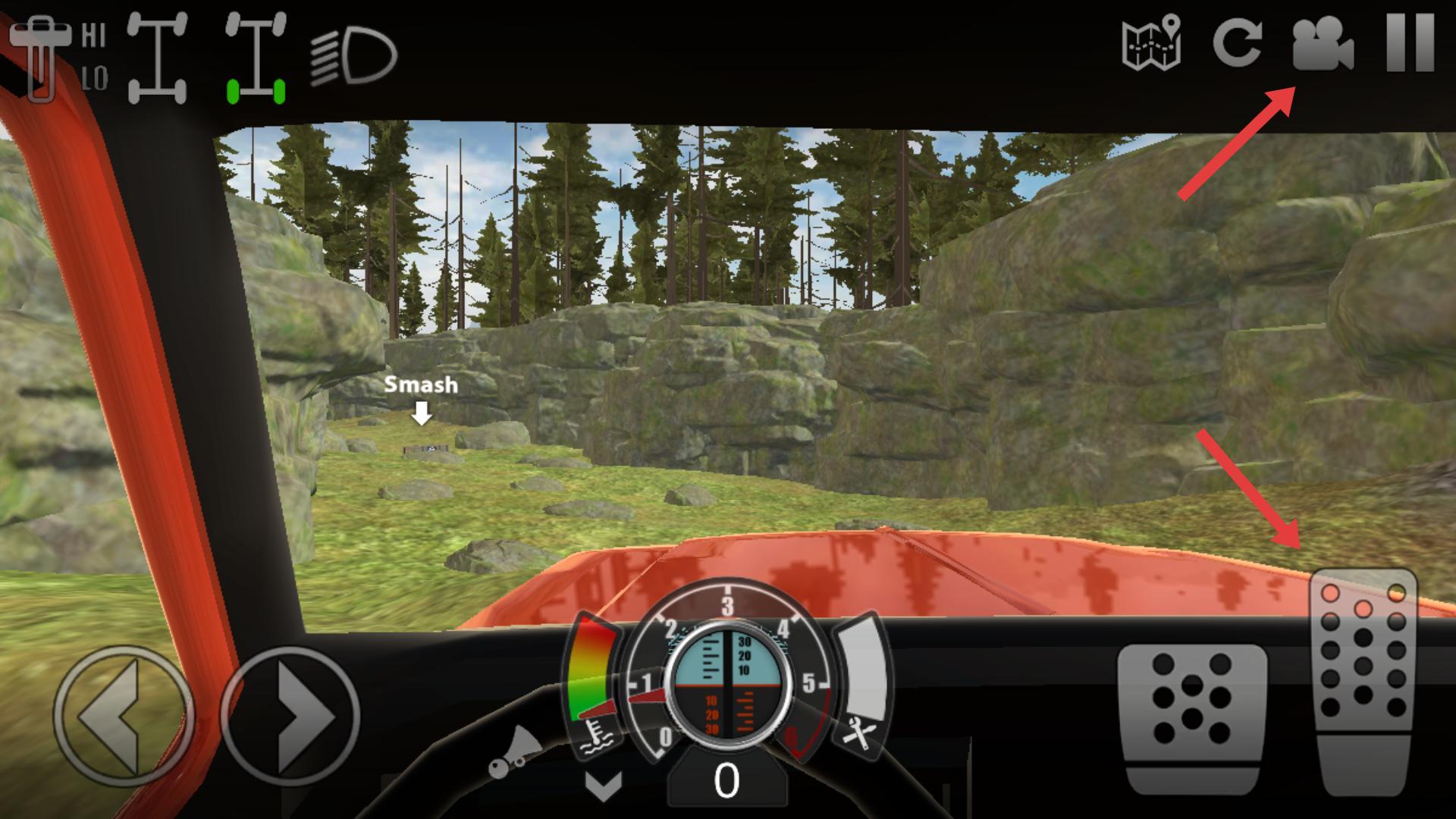 2、點擊右上角攝像機圖標可切換視角,同時借助右側相關按鈕,輔助駕駛紅色卡車,更好地應對野外的各種路況。