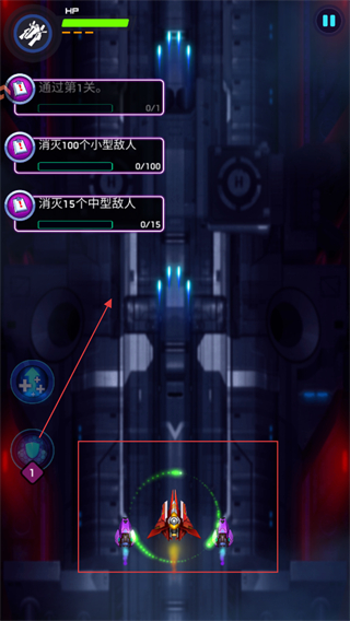 2、每個關卡都有特定任務,如通過第1關、消滅15個中型敵人等,在戰斗過程留意任務進度,努力達成任務目標,推進關卡進程。