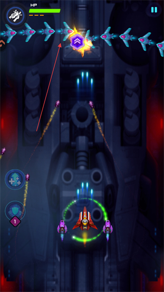 1、采用雙搖桿操作機制,左側控制飛行方向,右側調整射擊角度。支持360度自由旋轉和瞬時閃避動作,配合重力感應輔助瞄準,實現街機廳級別的精準操控手感。