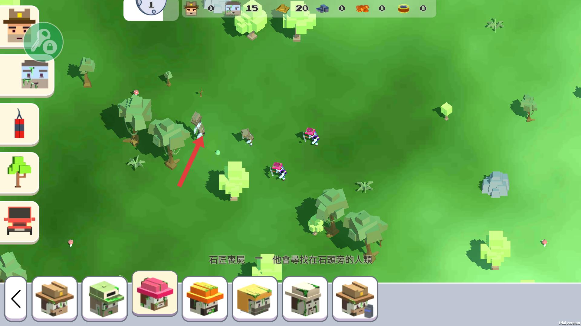 2、在下方欄中選擇對應的人物圖標,將其放置到綠色場景里,通過合理布置人物,為后續收集資源、應對怪物等環節奠定基礎。