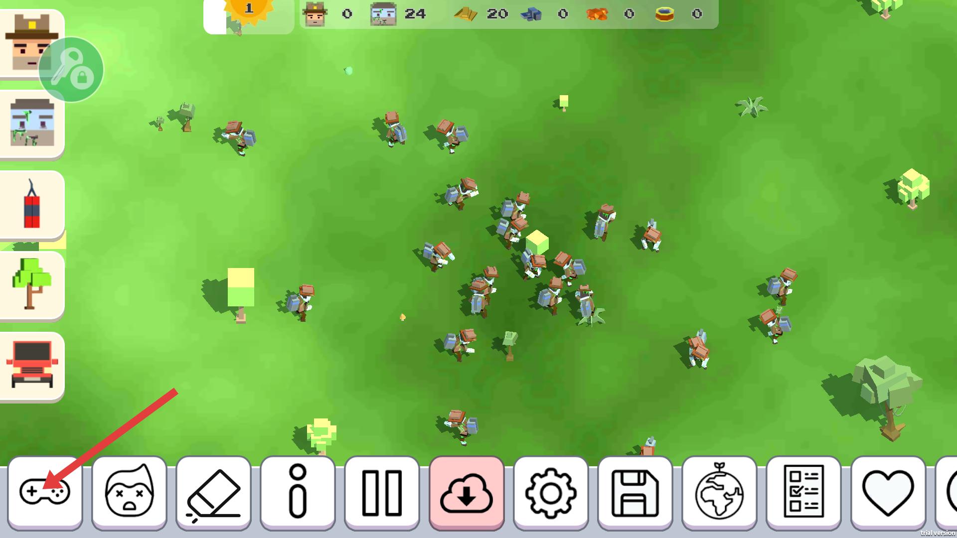 3、點擊下方游戲手柄圖標,可切換游戲操作模式,嘗試不同操作方式,找到更適合自己的,以便更好地操控場景中的單位。