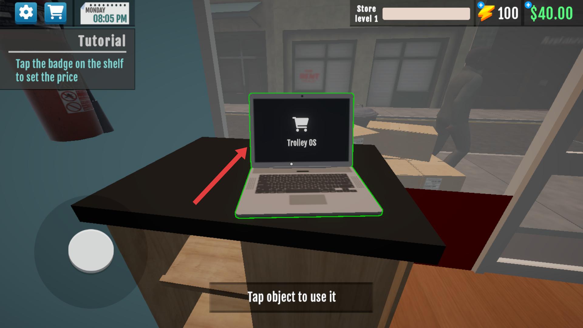 1、點擊桌上的筆記本電腦,進入操作界面,通過電腦可進行商品管理等相關操作。