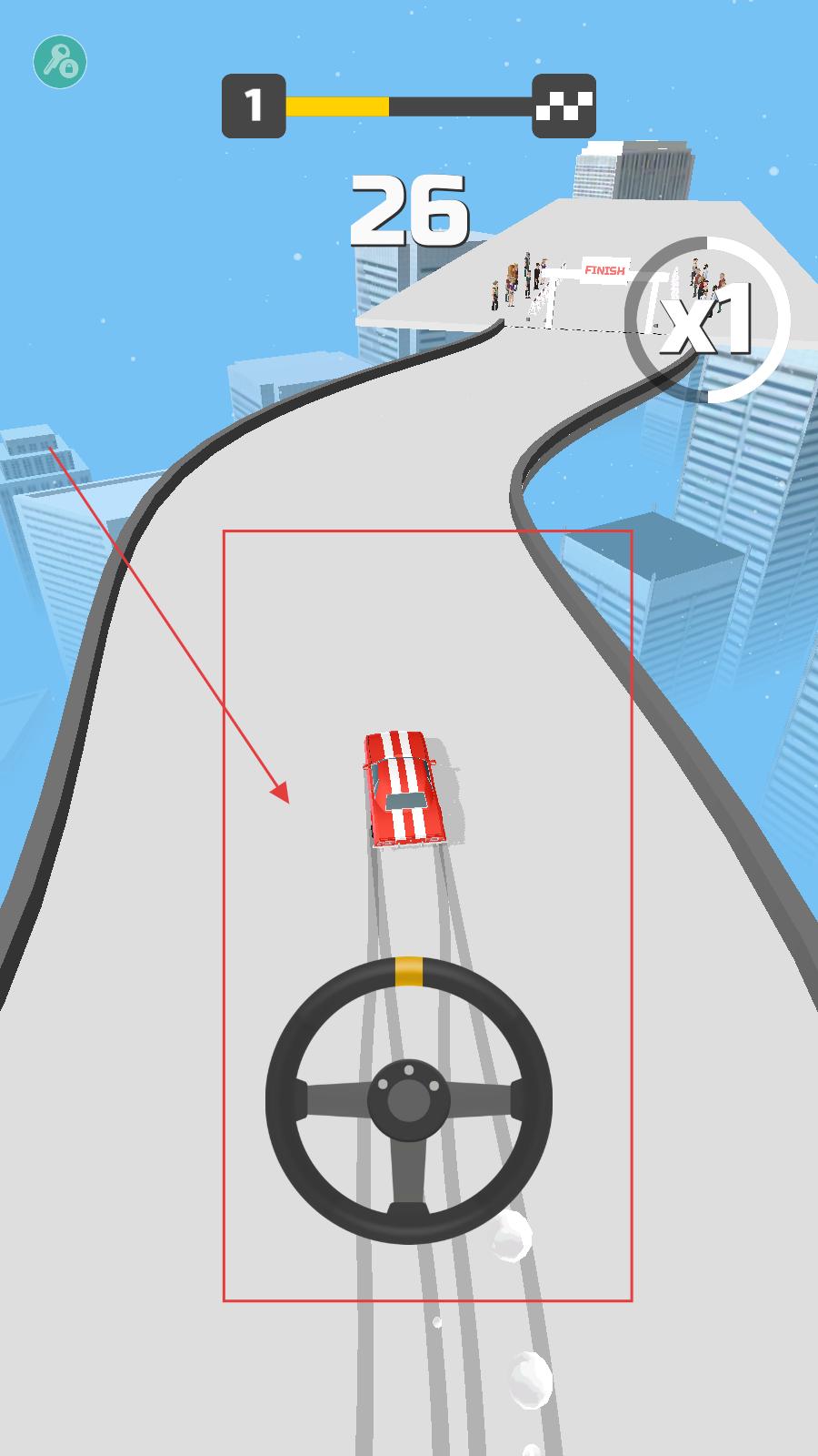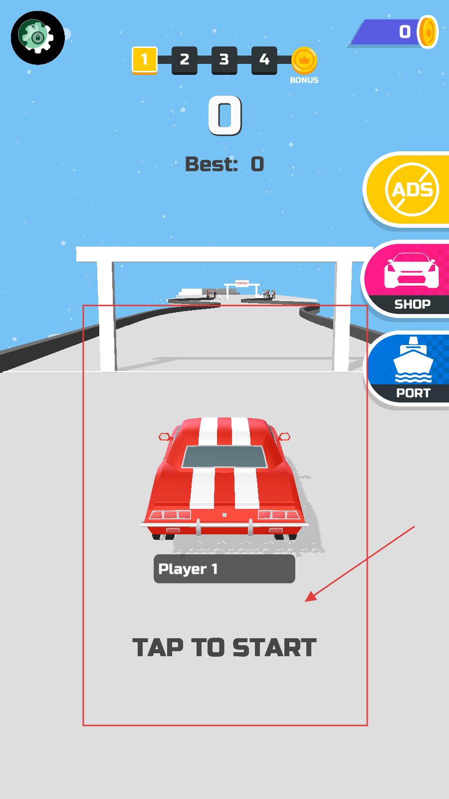 1、玩家進入游戲,可根據提示點擊屏幕可開始游戲,駕駛紅色賽車開啟賽道挑戰,玩家需要駕駛賽車進行闖關。