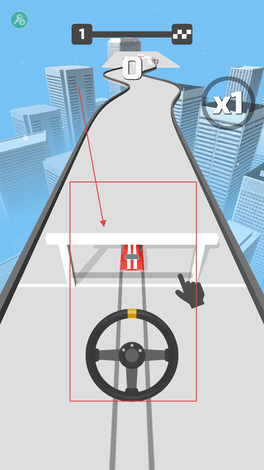 2、玩家需要通過操控方向盤控制賽車方向,在城市高空賽道上行駛,需精準轉向以避免偏離賽道。