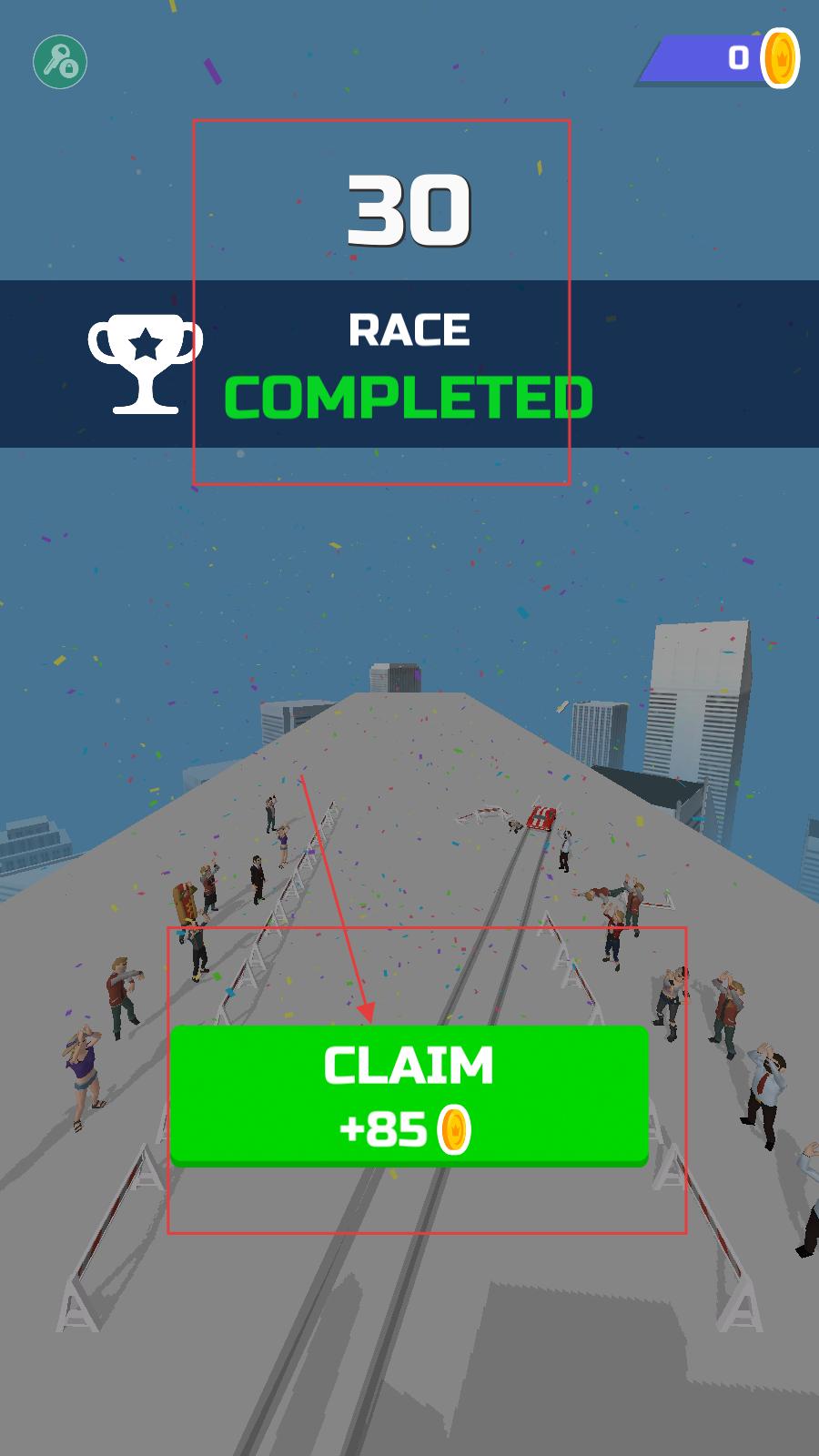 4、完成比賽后點擊CLAIM按鈕領取85金幣獎勵,金幣可用于升級賽車或解鎖新賽道,不斷提升賽車性能以挑戰更高難度。