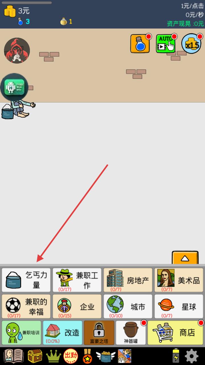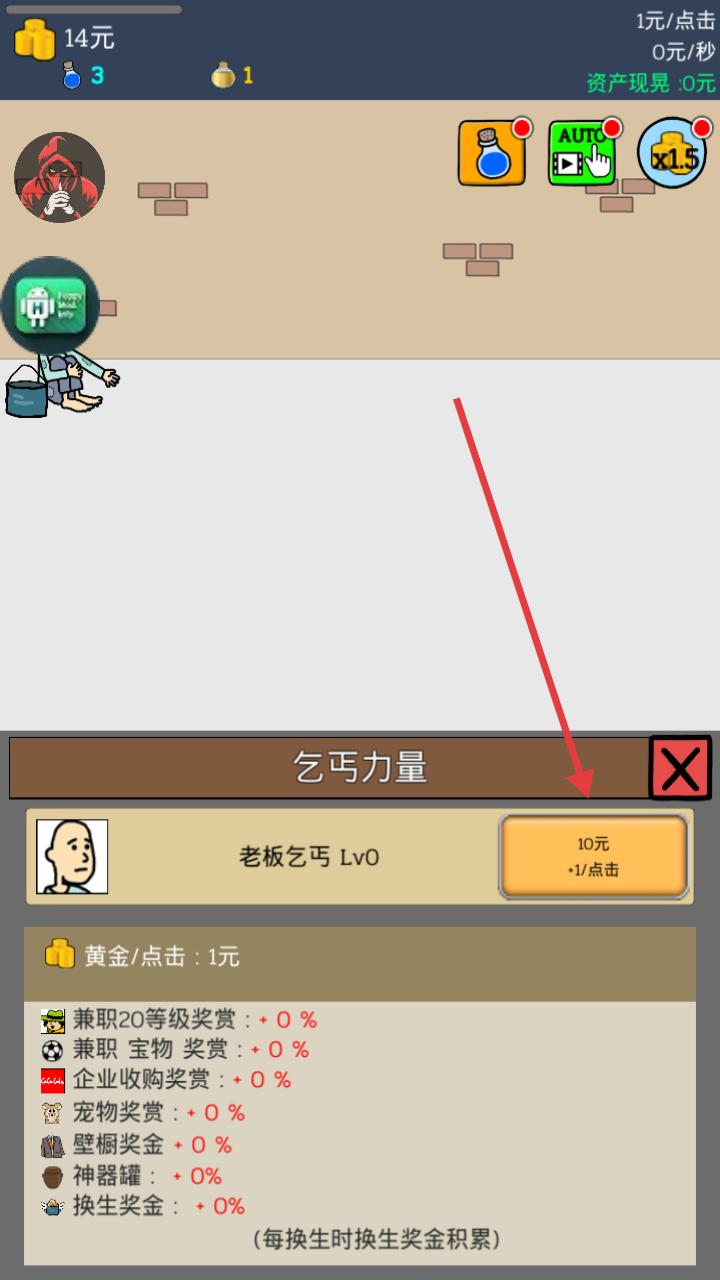 3、特殊雇員機制,可以雇傭各類職業從事乞討活動,從小丑到外星人等荒誕角色都能提升乞討效率,創造意想不到的收入組合方式。