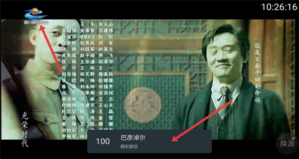 2、換源時選其他頻道如巴彥淖爾臺,屏幕上能夠顯示切換觀看內容如電視劇光榮時代,適配不同觀看需求。