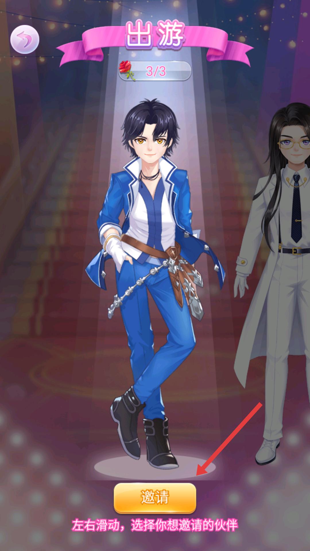 3、進入出游伙伴選擇界面,可左右滑動挑選想要邀請的伙伴,選好后點擊下方的邀請按鈕,就能成功邀請該伙伴一同出游。
