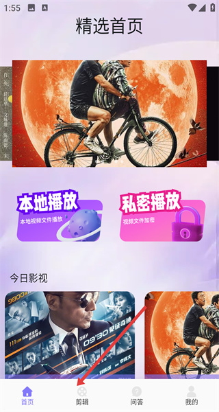 1、進入軟件的精選首頁后,在底部功能欄找到標有剪輯的選項,點擊該選項,進入視頻剪輯相關功能頁面。