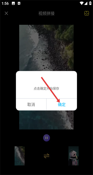 4、點擊保存圖標后,會彈出提示窗口,詢問是否確定開始保存,此時點擊確定按鈕,即可將拼接好的視頻保存下來。