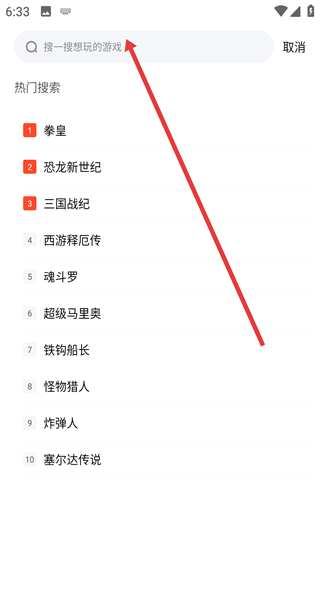 1、在搜索頁通過頂部搜索框輸入游戲名查找,或點擊熱門搜索如拳皇和三國戰紀快速定位想玩的游戲。