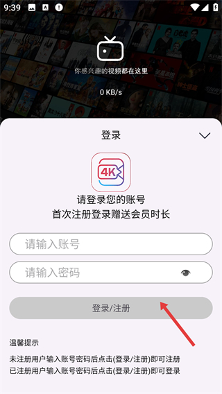 4、若要享受會員權益需登錄賬號還可贈送會員時長按照提示輸入賬號密碼,點擊登錄注冊即可完成操作。