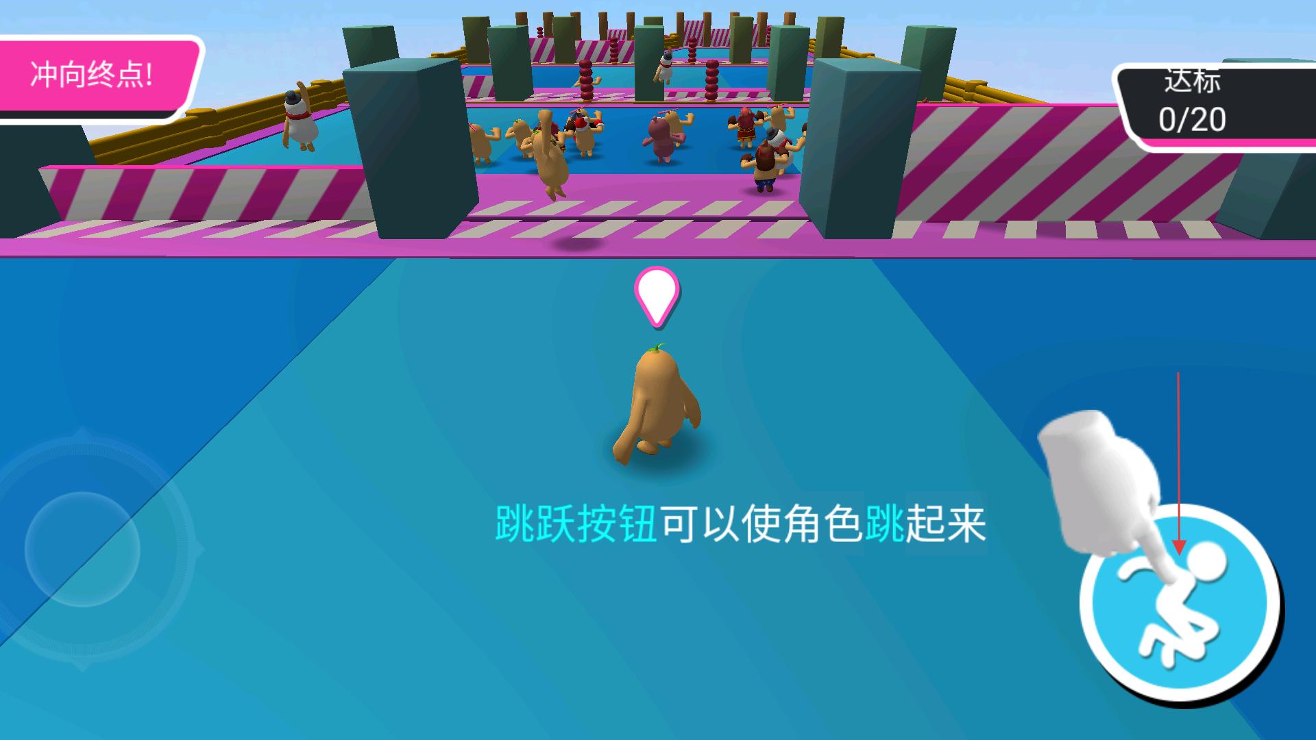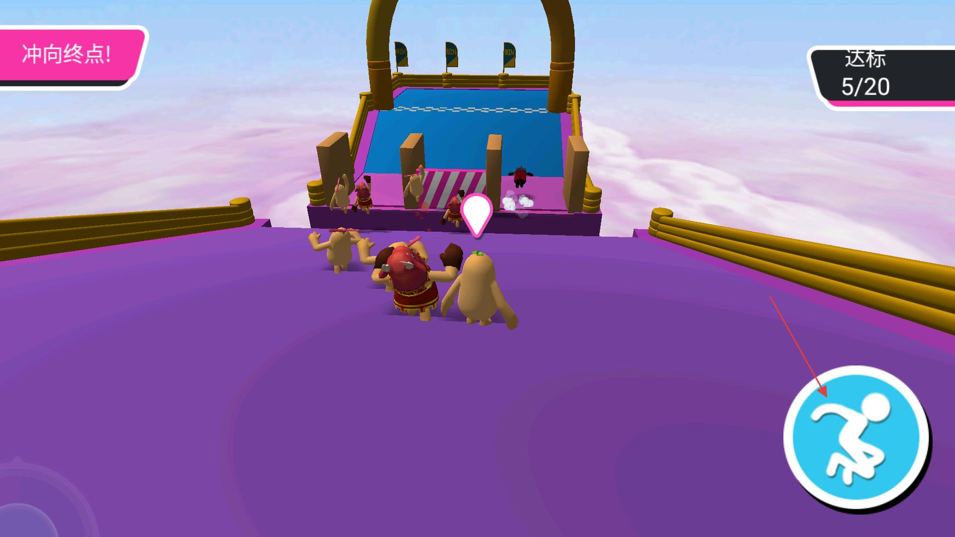 4、在賽道上不斷操控角色移動、跳躍,躲避各種阻礙,朝著終點沖刺,提升達標數量,最終成功沖向終點,完成比賽關卡。