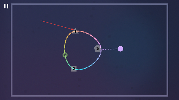 2、觀察屏幕中彩色的環形軌跡,操控節點沿著軌跡移動,最終將節點與目標點紫色圓點連接,完成軌跡的閉合。