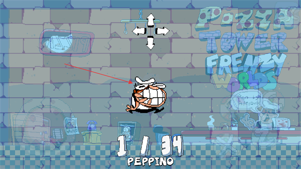 1、控制主角Peppino在像素風格的場景中移動,通過方向鍵靈活走位,探索披薩塔的各個區域,躲避障礙物和敵人。