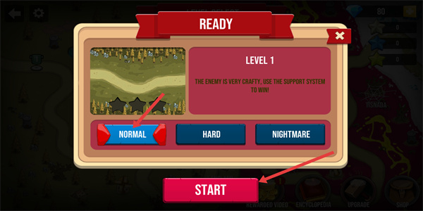 1、進入游戲后,選擇游戲難度,可根據自身情況選擇合適難度,然后點擊開始按鈕進入游戲關卡。