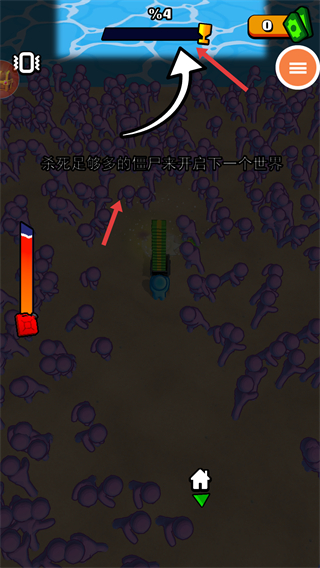 3、殺死足夠多的僵尸來開啟下一個世界關注進度條,持續戰斗積累擊殺數推動游戲進程。
