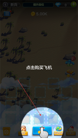 1、玩家點擊購買飛機,將其部署到地圖的空格區域,構建自己的飛機防御陣容,為后續的戰斗和合成做準備。