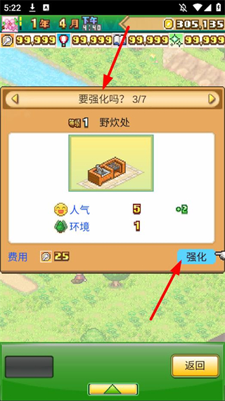 4、對野炊處進行強化操作,消耗對應資源,提升其人氣等屬性,增強該設施對露營地的增益效果。