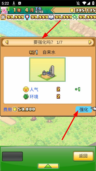 3、選擇自來水設施進行強化,花費對應費用,提升該設施的人氣與環境屬性,優化營地的基礎配套。