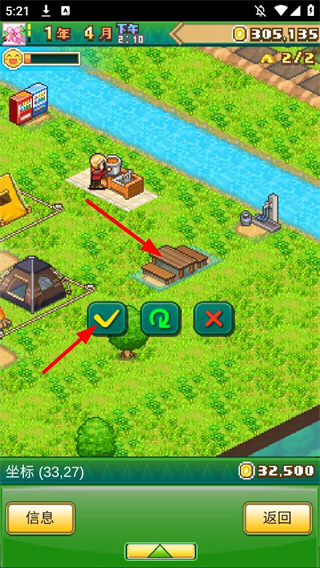 2、在露營地里選定野炊處的擺放位置,點擊確認按鈕完成布置,讓該設施落地營地并投入使用。