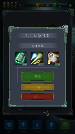 1、從圖標標記的關卡開始挑戰不同難度的地圖場景,可選擇開始或生存模式,體驗從基礎塔防到極限生存的策略性玩法。