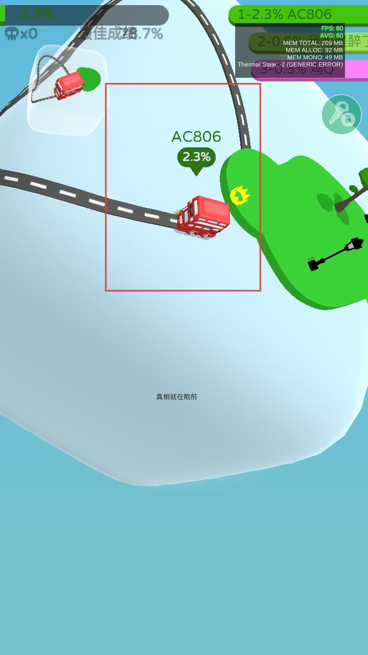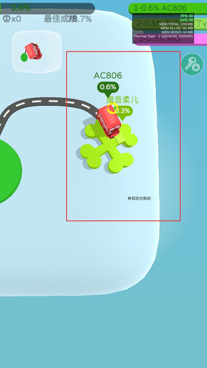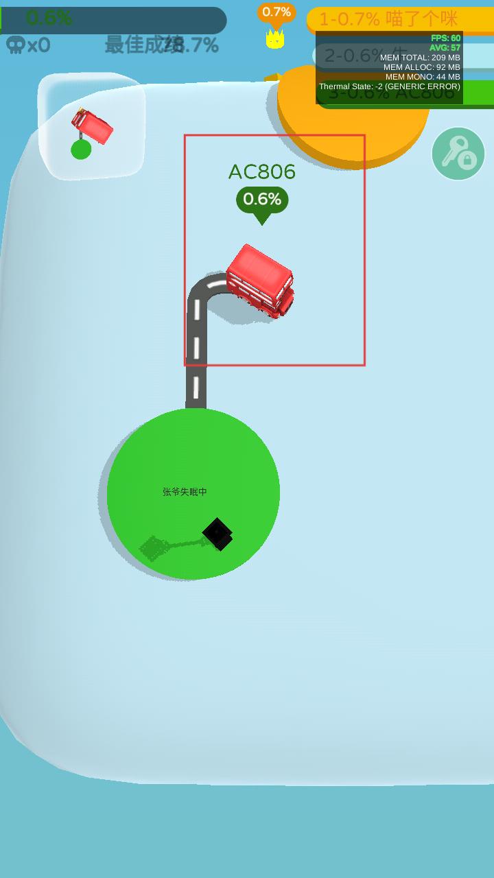 2、操控紅色雙層巴士角色在地圖移動,劃出道路軌跡來占領區域,界面顯示所占比例,開啟競技。