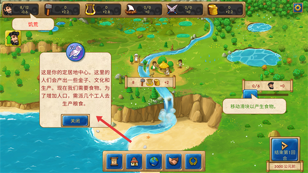 1、點擊開始游戲進入游戲開啟古希臘風格的城邦發展之旅,先熟悉主界面功能選項。